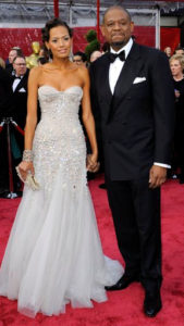 Forest & Keisha are one of my favorite couples to see on the red carpet simply because they alway look stunning. This Custom Domenica Vacca is fits perfectly! Her light gray/blue gown was beautifully beaded and sparkled as it moved.